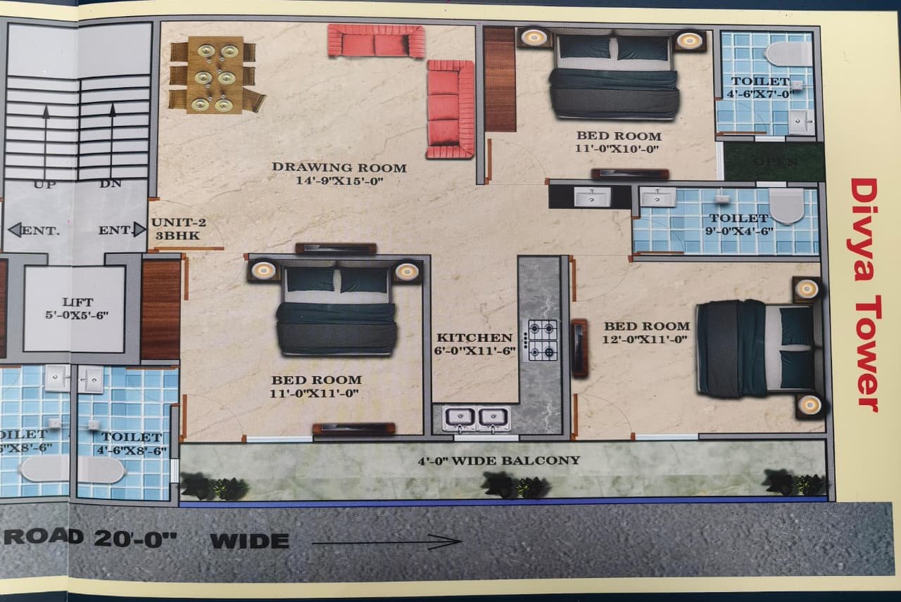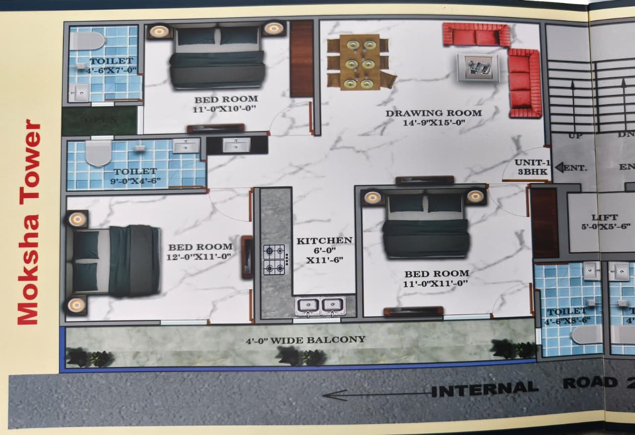 3 3 BHK + 3T 1800 Sq.ft ON REQUEST