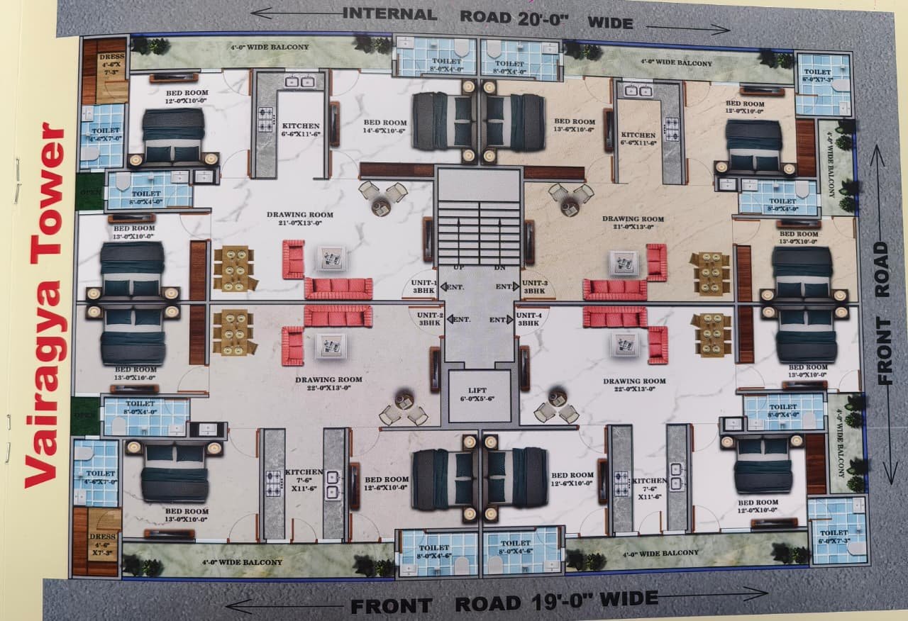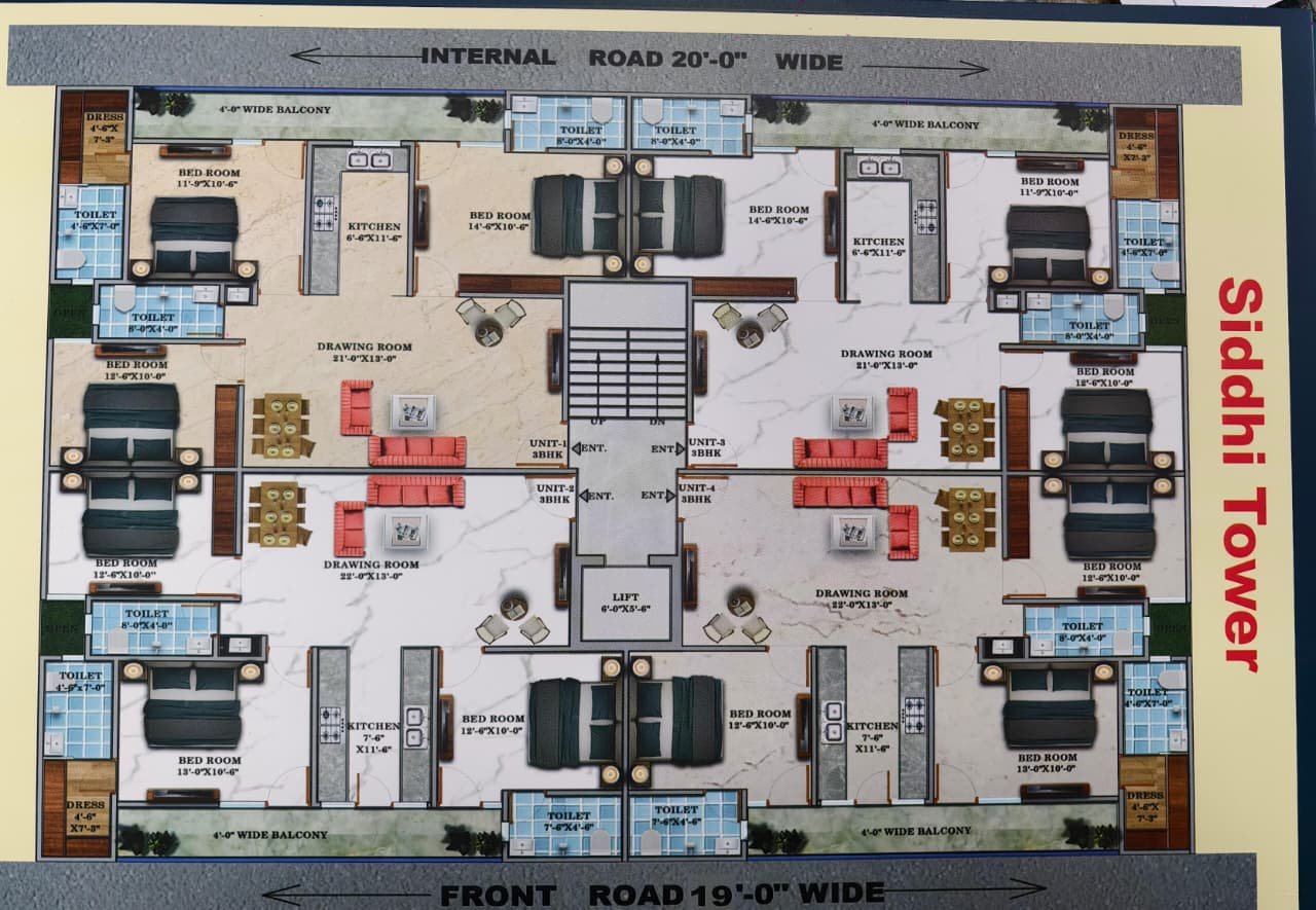 1 3 BHK + 3T 1700 Sq.ft ON REQUEST