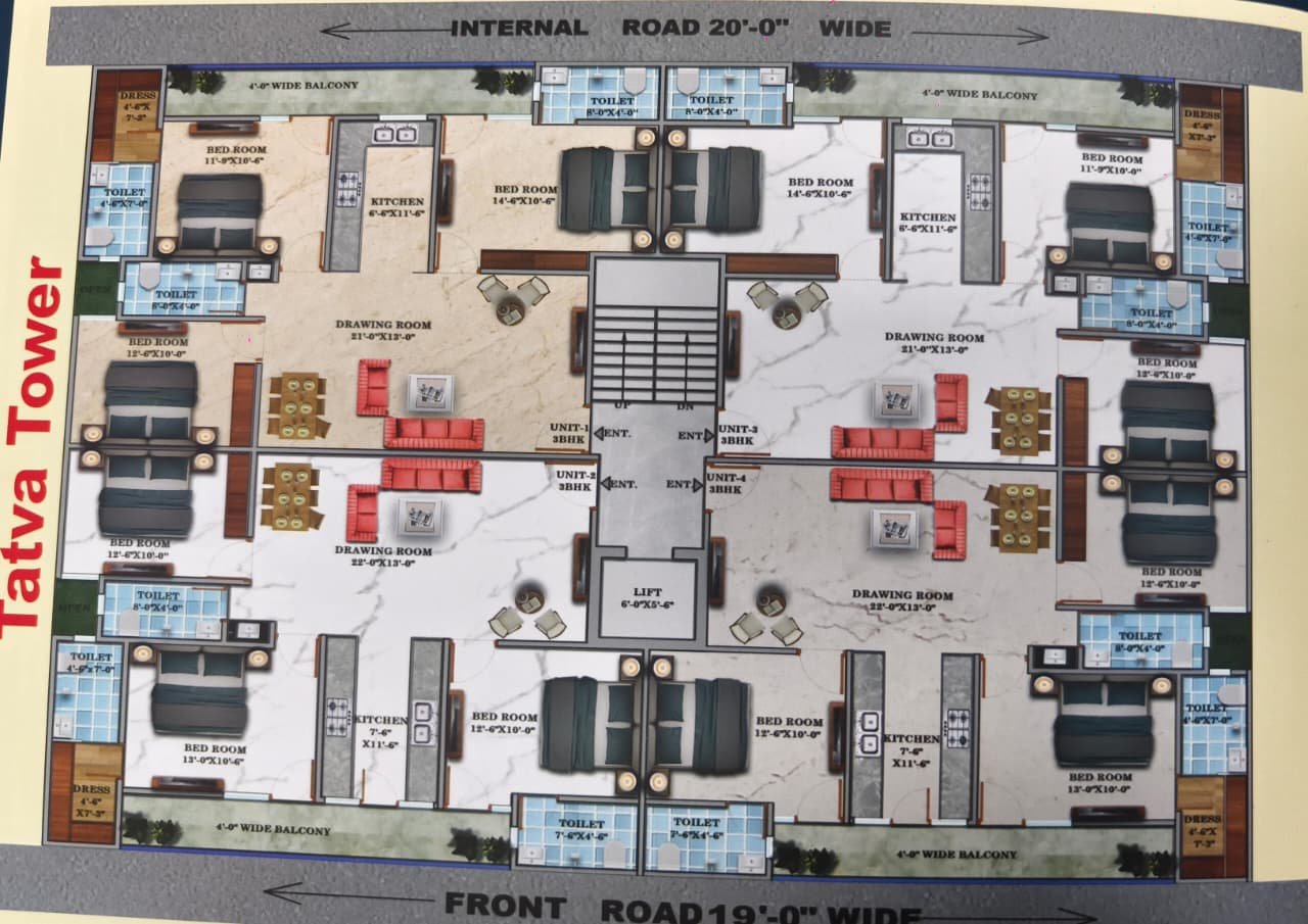 3 3 BHK + 3T 1800 Sq.ft ON REQUEST